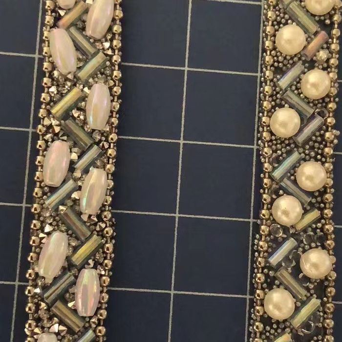 Hot fix rhinestone ribbon are made by rhinestones, crystals, resin beads, pearls, rhinestone cups, metal chains, chaton crystals, etc.