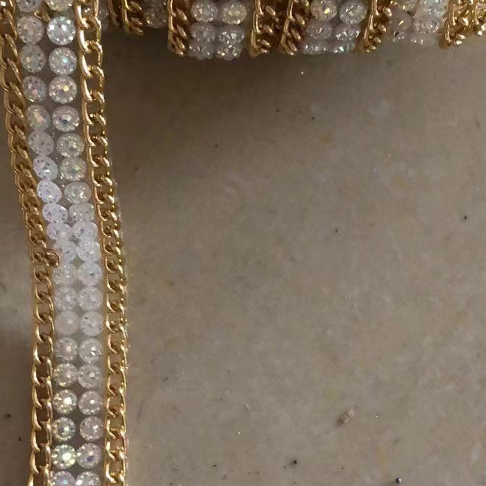 Hot fix rhinestone ribbon are made by rhinestones, crystals, resin beads, pearls, rhinestone cups, metal chains, chaton crystals, etc.