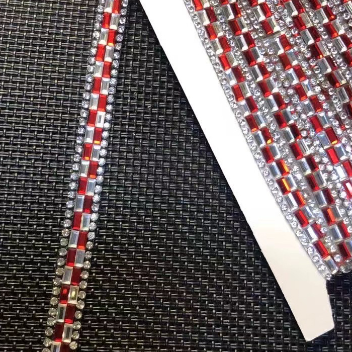 Hot fix rhinestone ribbon are made by rhinestones, crystals, resin beads, pearls, rhinestone cups, metal chains, chaton crystals, etc.