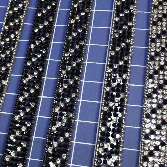 Hot fix rhinestone ribbon are made by rhinestones, crystals, resin beads, pearls, rhinestone cups, metal chains, chaton crystals, etc.