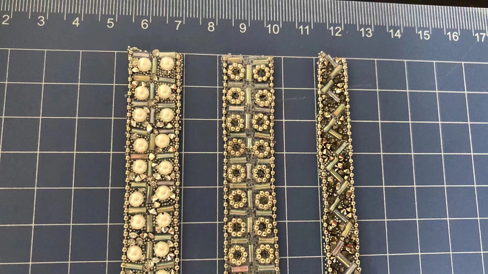 Hot fix rhinestone ribbon are made by rhinestones, crystals, resin beads, pearls, rhinestone cups, metal chains, chaton crystals, etc.