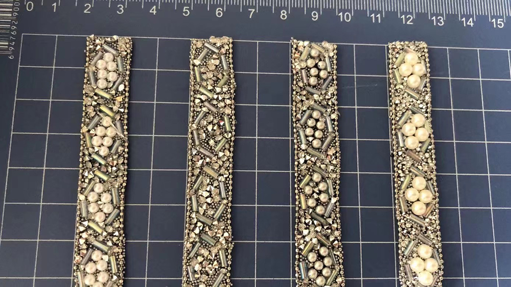 Hot fix rhinestone ribbon are made by rhinestones, crystals, resin beads, pearls, rhinestone cups, metal chains, chaton crystals, etc.