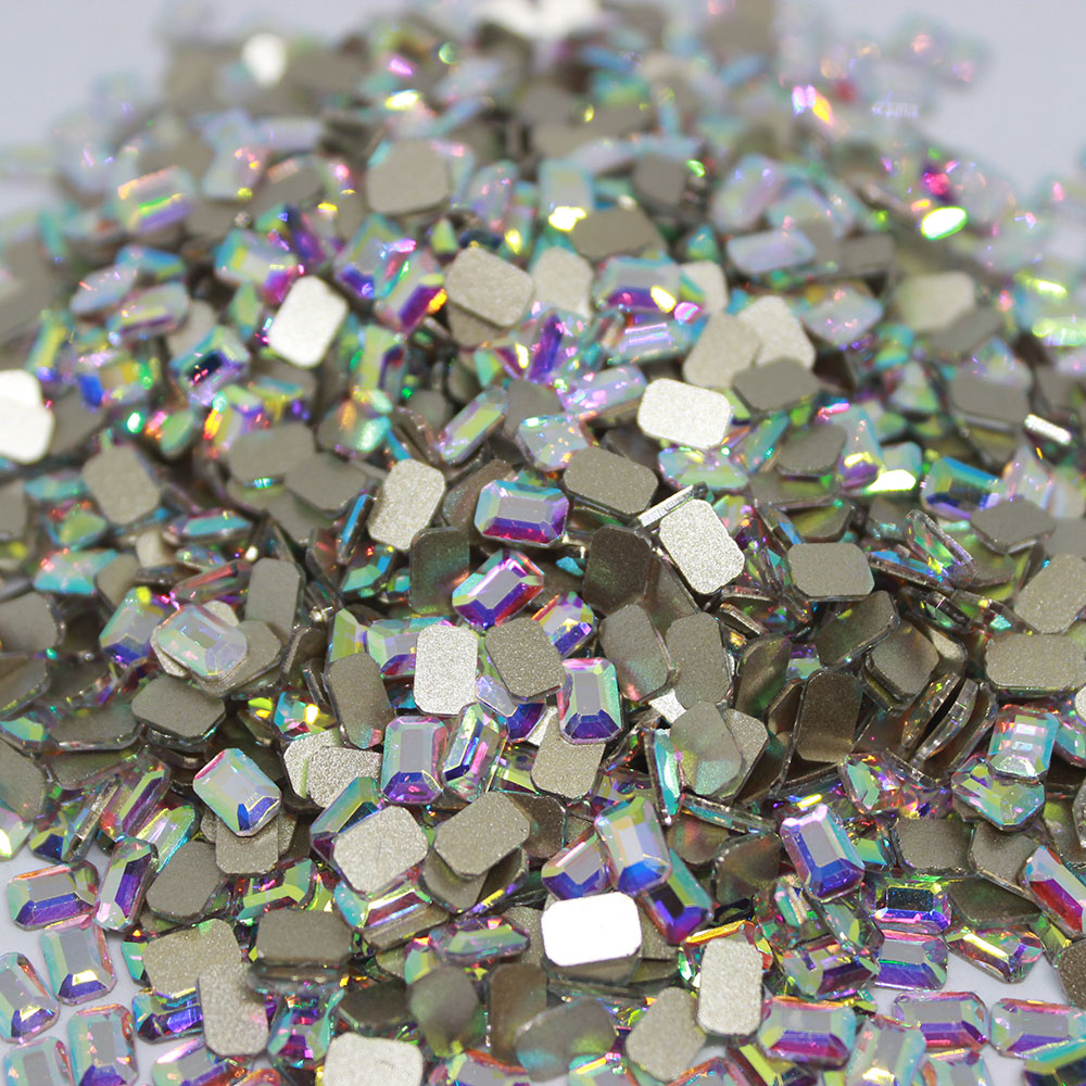 Octagon rectangle crystal AB in flat back non hot fix rhinestone