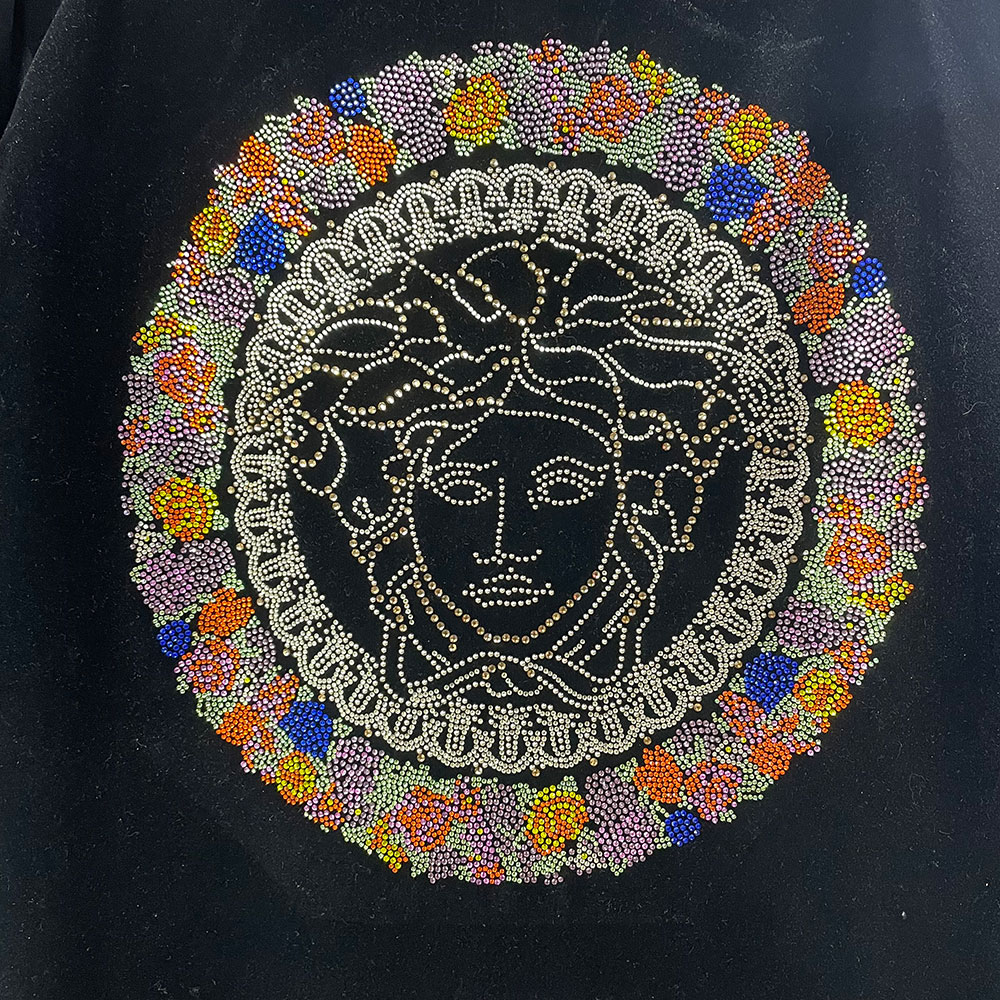 1. first confirm the design or picture, with details: size, color etc.. Then confirm the the materials of hot fix motifs, such as hot fix rhinestones, hot fix rhinestuds, hot fix nailheads, convex hot fix, epoxy hot fix, etc.