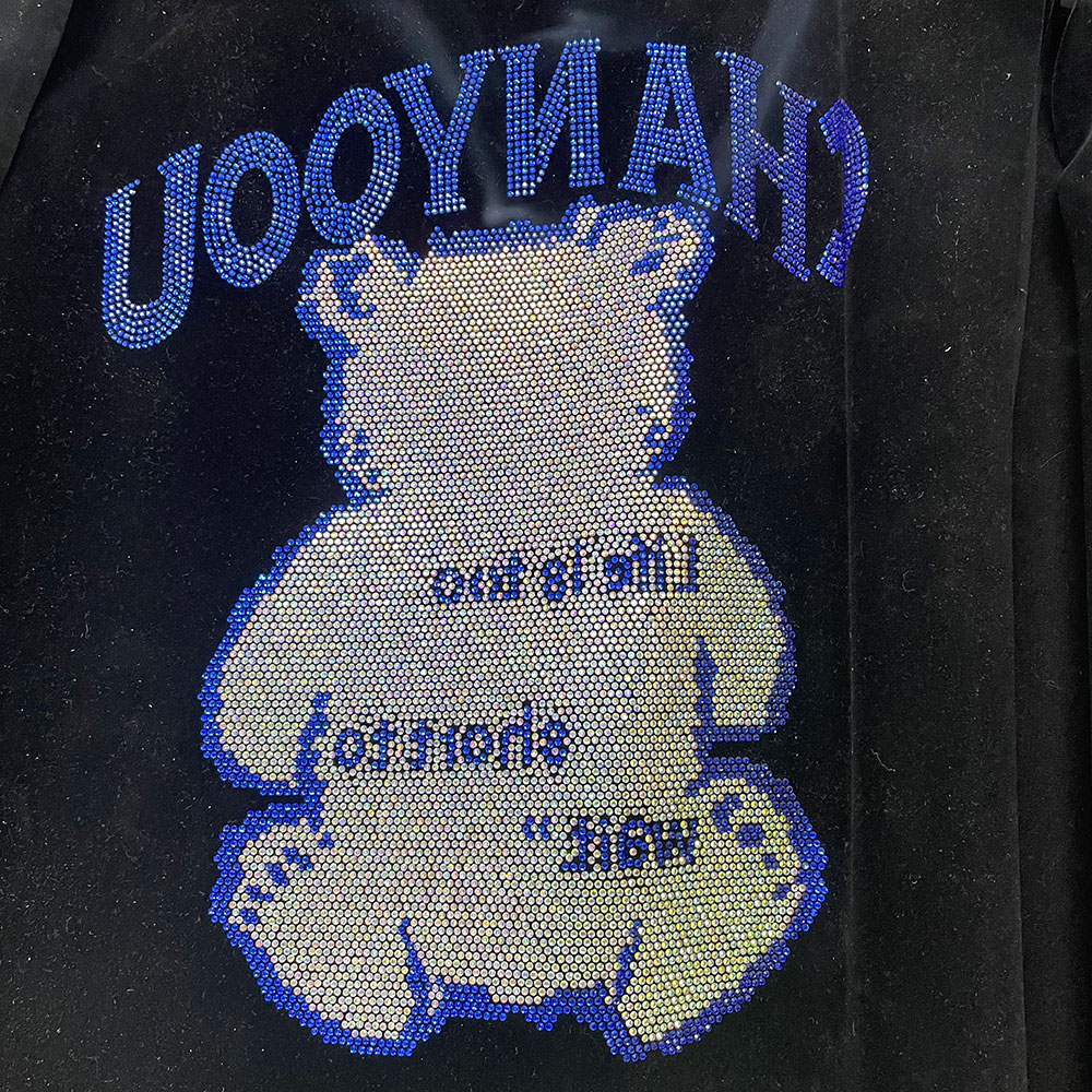 1. first confirm the design or picture, with details: size, color etc.. Then confirm the the materials of hot fix motifs, such as hot fix rhinestones, hot fix rhinestuds, hot fix nailheads, convex hot fix, epoxy hot fix, etc.