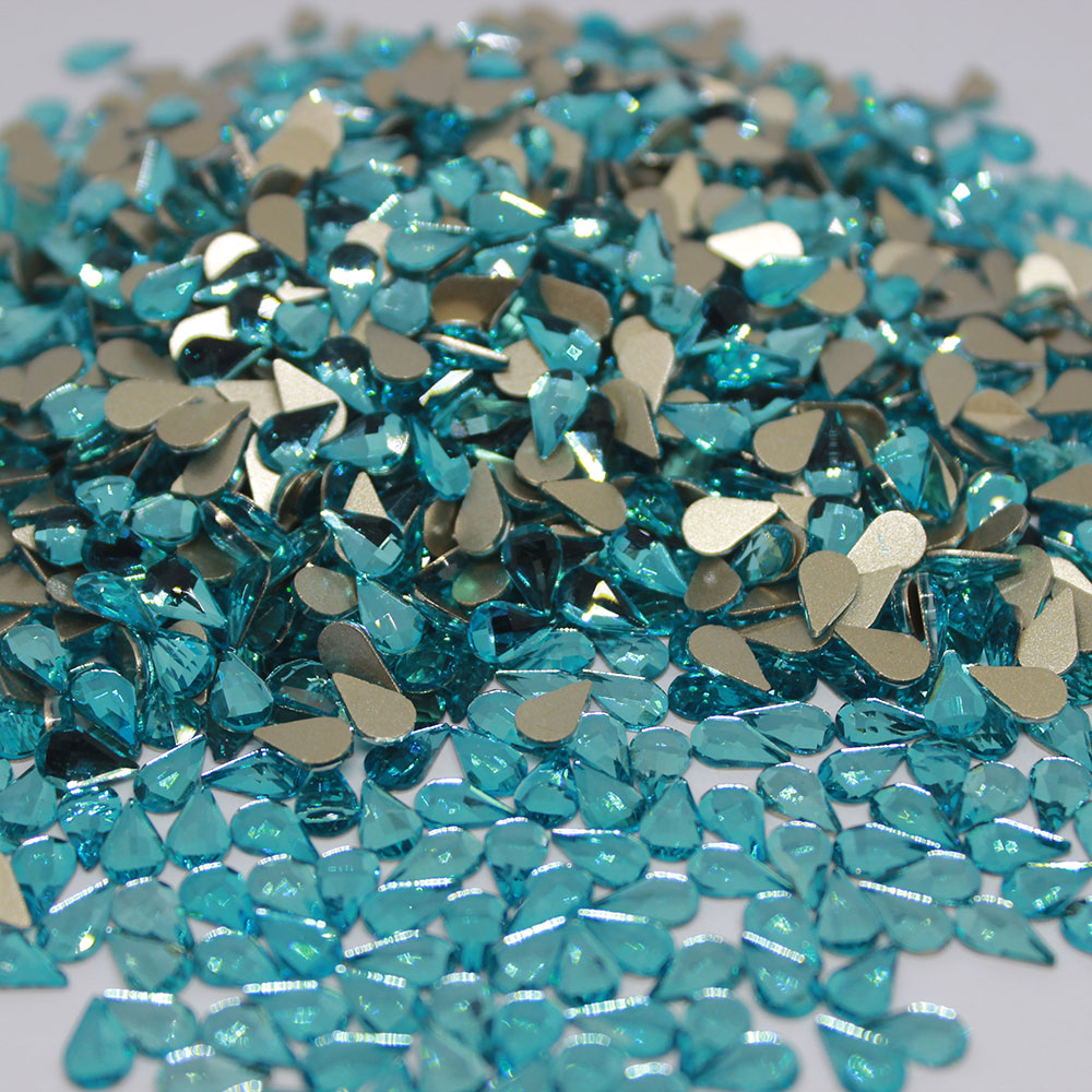 Tear drop aquamarine on hot fix rhinestones for nail arts