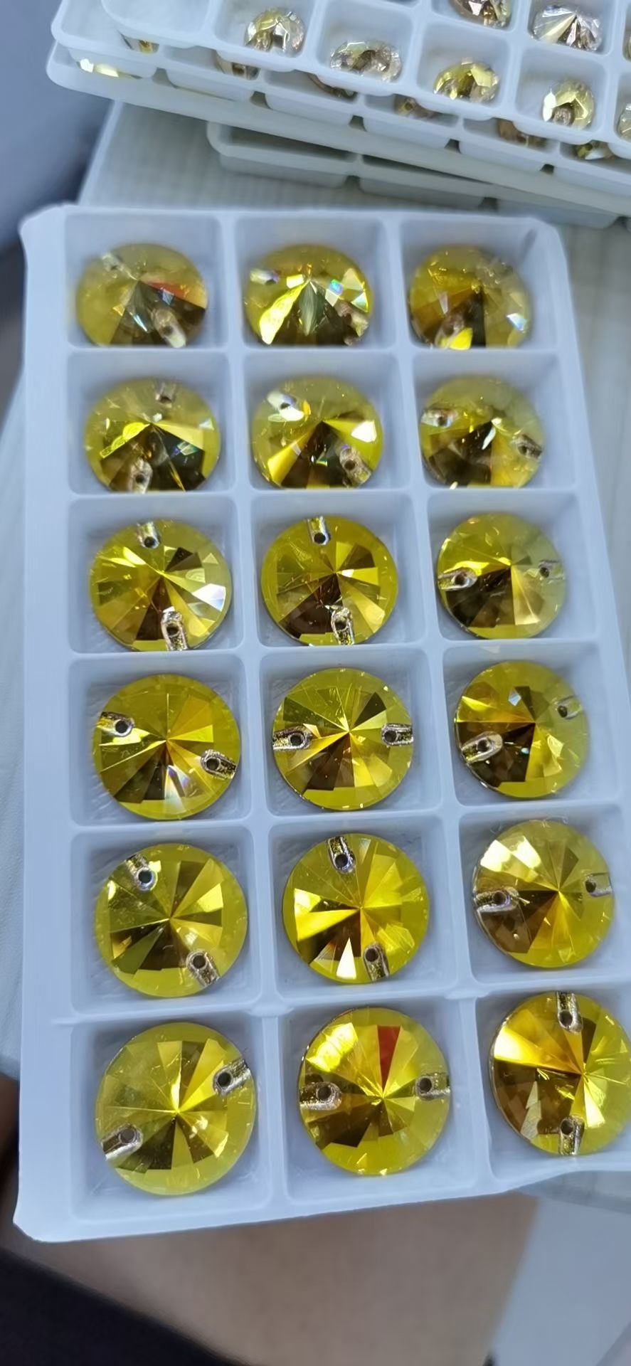 Sew on flat back glass crystals with holes