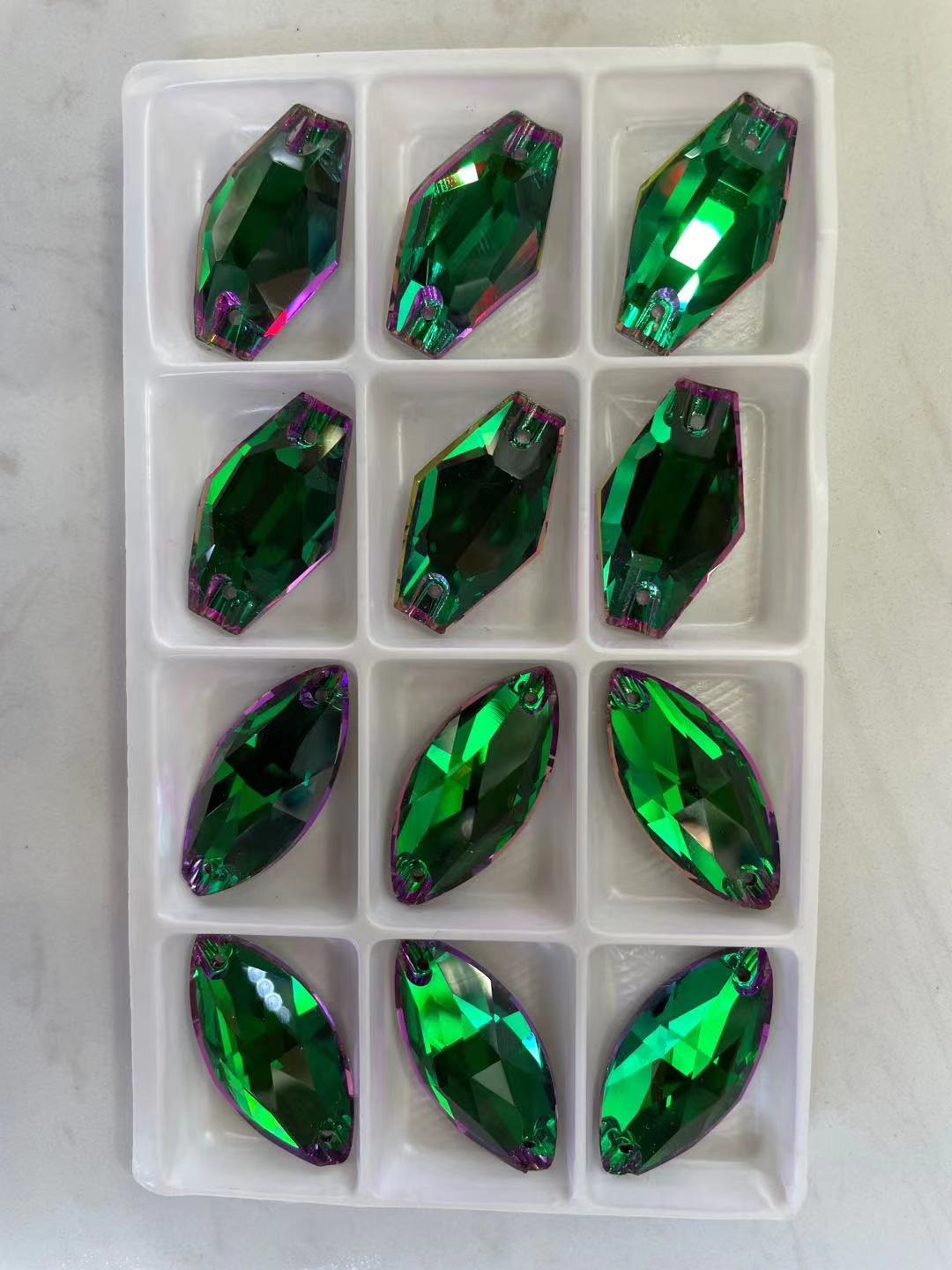 Sew on flat back glass crystals with holes
