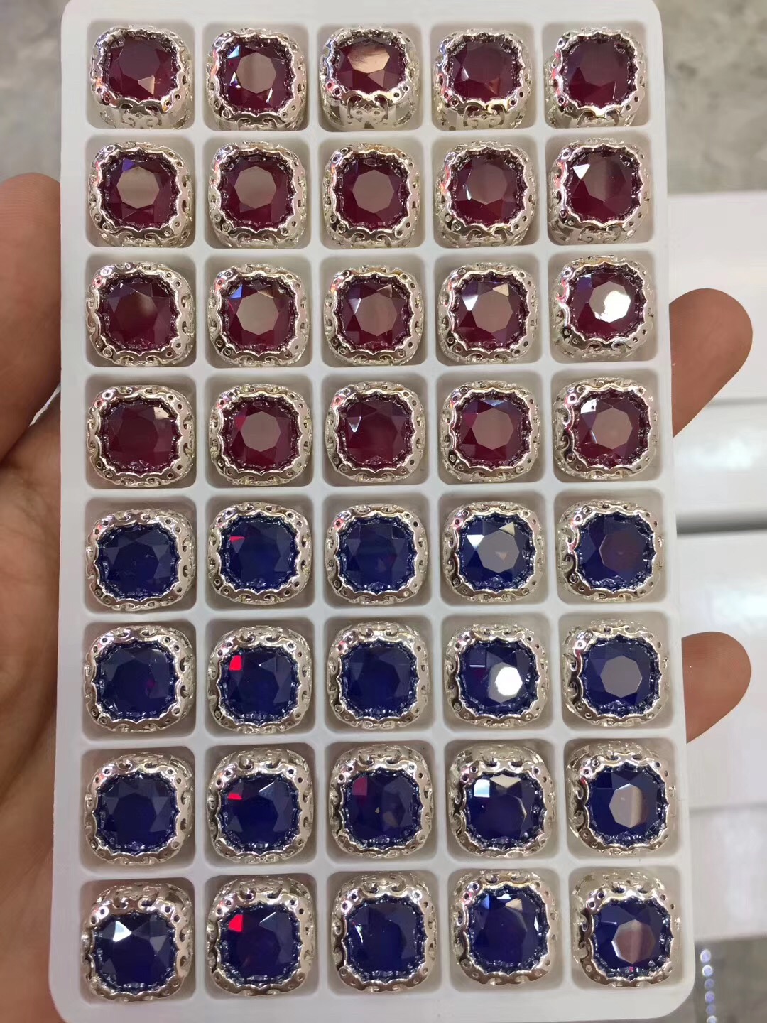 Popular colors of square sew on crystals
