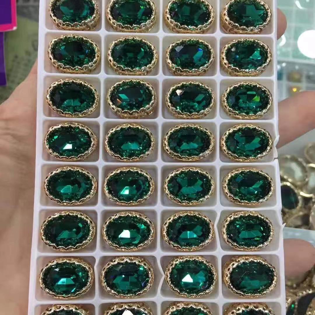 Ellipse emerald sew on flat back crystal rhinestone